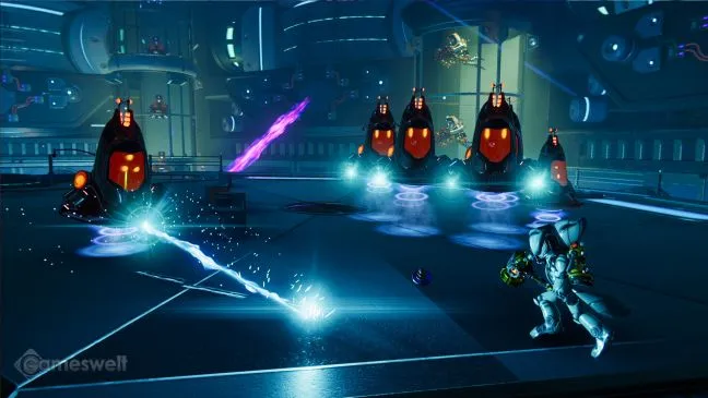 Забегите в щель, в которой обнаружится вход в архив. К сожалению, карта измерений уже исчезла. Поэтому Клепа должен проникнуть на флагманский корабль Нефариуса в надежде вернуть карту. Бегите по первому коридору и поднимитесь на большую круглую платформу, которая причалит перед вами. Будьте готовы к рыскающим роботам-охранникам. Они приходят партиями, так что скучать по пути наверх не придется.