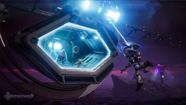 Рэтчет и Кит должны быть переведены в другую тюрьму. С помощью крюка-качели (клавиша l1) зацепитесь за их мобильную камеру и летите вместе с ними, пока вас автоматически не освободят.