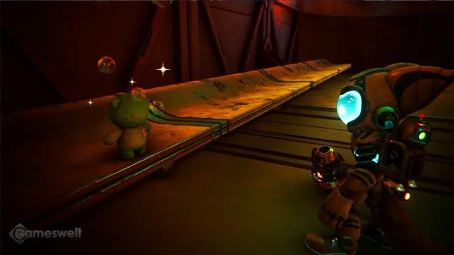 Желтая щель у панорамного окна выведет вас наружу. Спуститесь на платформу с левой стороны и вернитесь в крыло камеры. Там сразитесь с другими роботами и заберите сокровища из камер. Среди них - раритан и последний в игре золотой болт. Это даст вам 25, которые разблокируют все 25 типов читов, фильтры рендеринга и дополнительные возможности в меню. Кусок брони QForce: Torso находится в другой ячейке. Если вы не можете взять его с собой сразу, вернитесь на эту планету позже. Когда сигнал тревоги перестанет действовать, камера также будет открыта.