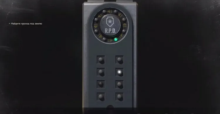 Там находится несколько патронов для подзарядки оружия. Хватаем небольшой сейф с полки и нажимаем на нем кнопки в правильном порядке: 2, 4, 5, 7, 1, 6, 3, 8. Забираем полученную клавишу.