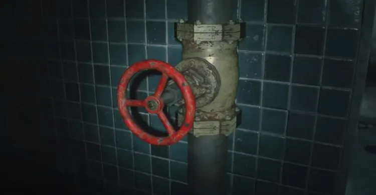 Направившись в коридор, уничтожаем мутантов, берем патроны с трупа в углу. Возле мусорки забираем красную траву. Воздействуем на дверь. Дальнейший проход в душевую невозможен из-за пара, чуть дальше видим трубу с недостающим вентилем. Шарим по ящикам, в одном находим патроны для дробовика, а во втором находится труп зараженного. Подходим к шкафу с головоломкой, набираем BIO (CAP).