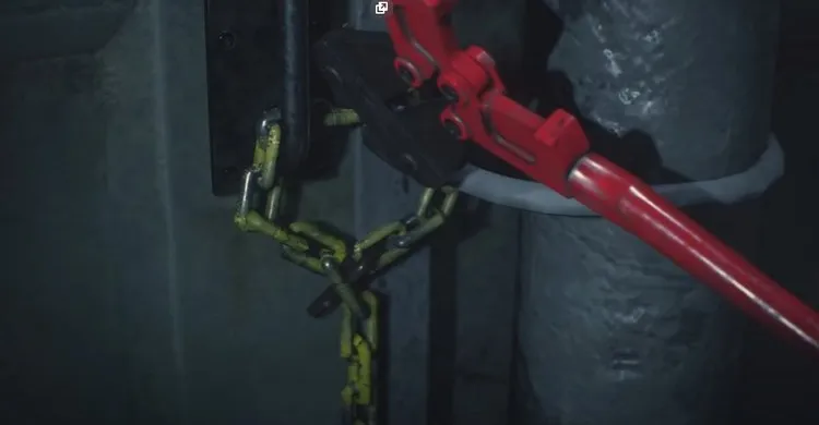 Берем кусачки с бочки и используем их для того, чтобы перекусить цепь на двери.