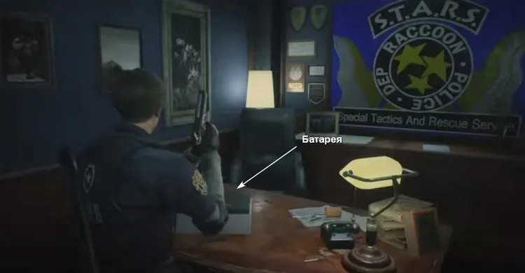 Забираем красную траву в офисе, патроны со стола, порох желтого цвета, спрей и гранату. Проверяем системник компьютера и монитор. Следует найти флеш-карту USB.В кабинете начальника можно найти Батарею, Внутреннюю памятку, там есть код: лево 9, право 15, лево 7. Открываем двери и возвращаемся в библиотеку.