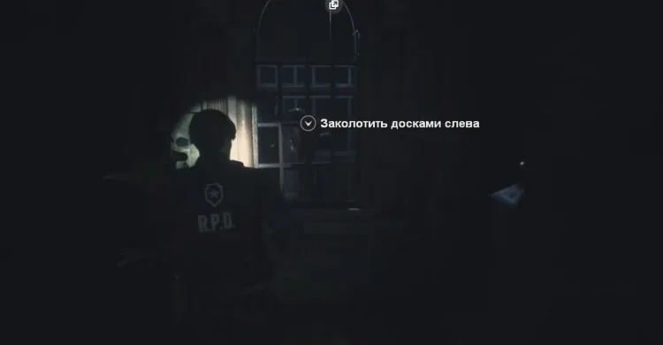 В правой части комнаты на коробочках находится зеленая трава (частично восстанавливает шкалу жизни). На диванчике забираем патроны и несколько досок для того, чтобы забить окна, и, следовательно, удержать поток зомби. Дверь сбоку закрыта. Окна покрылись белыми знаками: они открыты. Выйти через окна нельзя – можно только забить найденным набором досок.