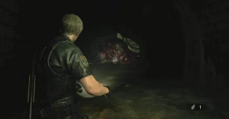 В начале локации, вдали заметим аллигатора в тоннеле. Через коридоры переходим в комнату и прыгаем в воду. За вами начнёт гнаться аллигатор, от него нужно убежать по каналу и в конце надо перебраться через газовую трубу, монстр ухватиться за неё. Для того, чтобы убить аллигатора, надо выстрелить в трубу, и она взорвётся.