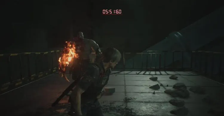 У Тирана повредилась рука, поэтому атаки от него будут происходить только с большого расстояния. Не тратьте силы и патроны на монстра, от нас требуется только выжить в течение определенного времени. Одним взрывом нам принесет ракетницу. С одного попадания босс умирает.