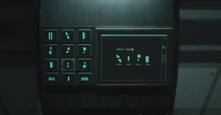 Следующим этапом у нас предстоит выход к панели, где нужно будет ввести код. Выглядит он так: два угла, линия, куб и кубик, прямоугольник. Данный код активизирует устройство, которое находится в помещении с растениями.