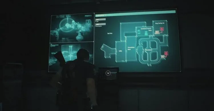 У игрока есть ровно десять минут, чтобы осуществить побег. Нам нужно воспользоваться лифтом, который отнимет примерно минуту драгоценного времени. В комнате для наблюдения берем лекарство. Там же на мониторах будет видно, что Клэр сейчас находится в лаборатории.