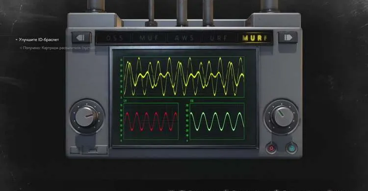 Соответственно, настраиваем наш модулятор на режим MURF, сопоставляем волны и вставляем в панель. Будет дано электричество и откроются ячейки, которые находятся в стенах. Подбираем сумку и читаем найденную запись.