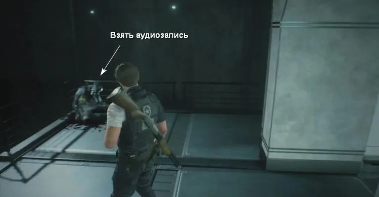 Там будет находиться труп, рядом с которым нужно взять аудиозапись. Далее используем панель, будет проложен мост в центр. Идем в прямом направлении.