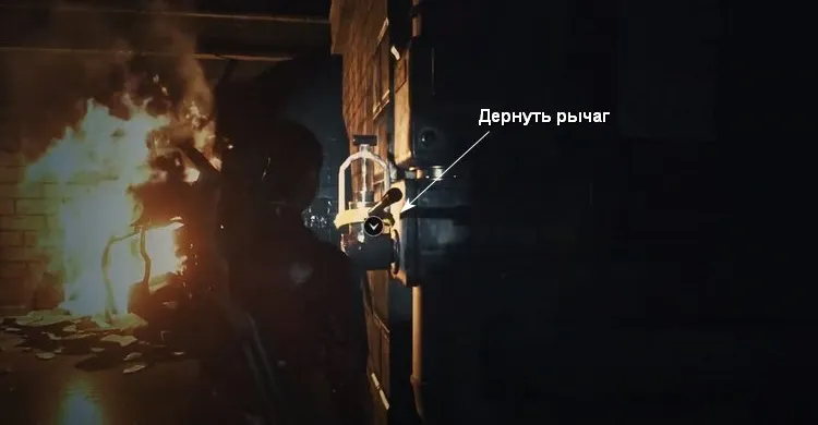 Поднимаемся на второй этаж в библиотеку, где с использованием домкрата нужно сдвинуть стеллажи в виде мостика, чтобы по ним можно было пройти. Идем по балкону пока с правой стороны не окажется дверь.