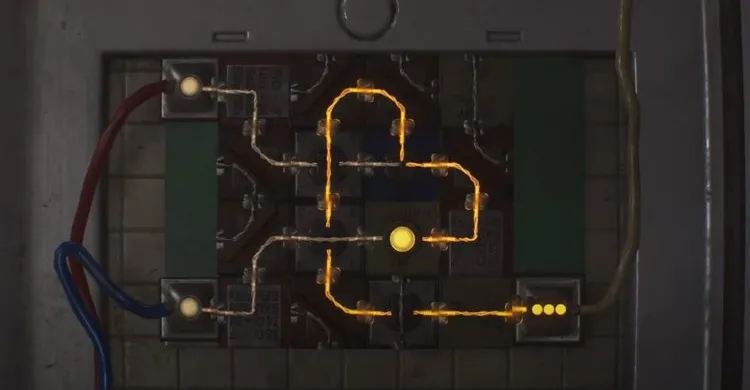 Двигаемся в знакомый кабинет шефа полиции. На электронную панель применяем обе найденные детали. После решаем электрическую головоломку. В ней нужно соединить пару левых проводов с правым. После начнется кат-сцена, в которой звонит шериф и сообщает, что Шерри у него. После играть предстоит за эту маленькую девочку.
