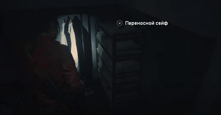 В восточной части спускайтесь по ступенькам на первый этаж. Открываем еще одну червонную дверь в комнату допросов. Со стола берем патроны, а с полок переносной сейф. Используйте комбинацию 56837124. Внутри найдете Запасную клавишу.
