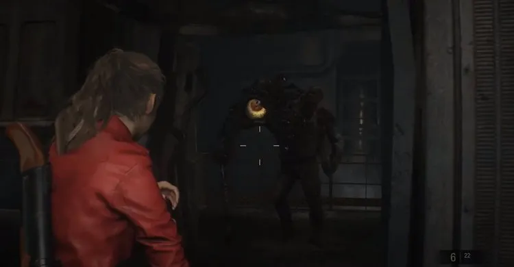Далее будет ролик в которой мутант сбросит героиню вниз. Он подберет обломок трубы и будет бегать за Клэр. Нужно отойти подальше и обстреливать его глаз на правой руке. Если монстр его закроет, то следует произвести пару выстрелов в руку, и он снова откроется.