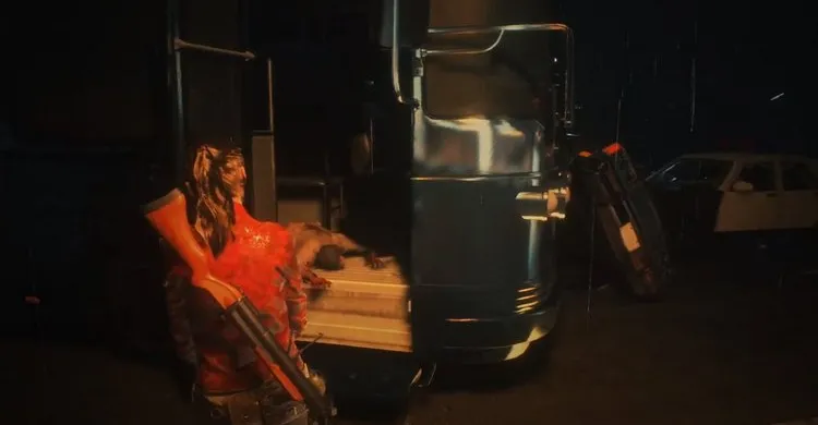 Слева от автобуса можно найти синюю траву, а внутри на одном из сидений гранату. Чтобы беспрепятственно её забрать придётся убить двух зомби. Для выхода из автобуса нужно воспользоваться задней дверью.