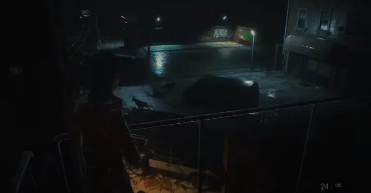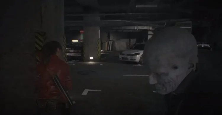 У шефа нужно выяснить адрес, по которому скрывается Шерри, забрать ключ и спуститься на лифте на подземную стоянку. Через неё можно выйти из здания. Здесь в погоню пустится Тиран. Впереди два зомби.