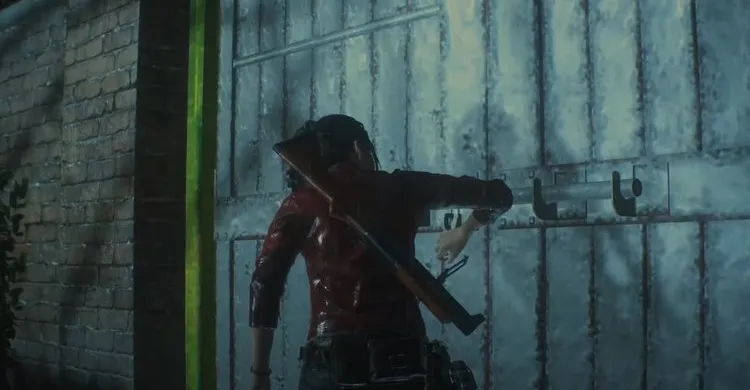 Игрушечные ворота — хорошее укрытие. Рано или поздно коп пойдёт отмываться от кислоты, оставив ключ в замке. Нужно его забрать и мчаться к выходу. Только в этот момент станет ясно, что дверь блокирована ещё и цепочкой. Придётся возвращаться под лестницу и быть схваченной полицейским. В момент ареста он будет заражён зомби.