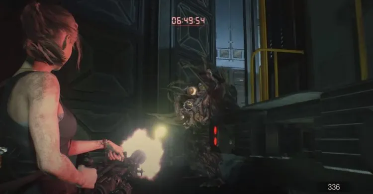 Идём обратно в комнату, где оставили Шерри. По дороге на мост выпрыгивает огромный монстр, затем появится доктор. Она использует снаряды и заморозит его. Доктор успеет рассказать, что чудище – это её супруг Вильям. Монстр разморозится, у него вырастит еще две руки и оттолкнет ученого. Необходимо передать доктору антивирус и бежим за монстром вниз.