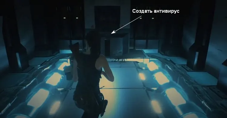 Идём обратно к панели и вставляем картридж. Начнется распыление и растения в главном зале погибнут и мертвый ученый с карточкой окажется на полу. Идём к нему и берем себе чип, с его помощью получим пропуск третьего уровня.