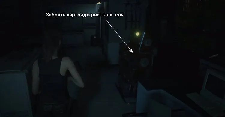 Получаем заправленный картридж. Идем обратно в холл и на склад, там будут зомби. Идём вниз по лестнице и ищем морозильник, он будет за комнатой с одеждой. Через панель отправляем картридж в охладитель, там он затормозится и вернётся. Идем дальше в северную часть, здесь найдём нож, порох.