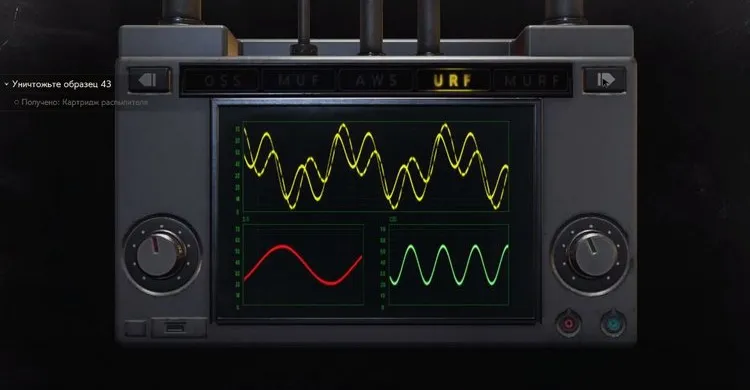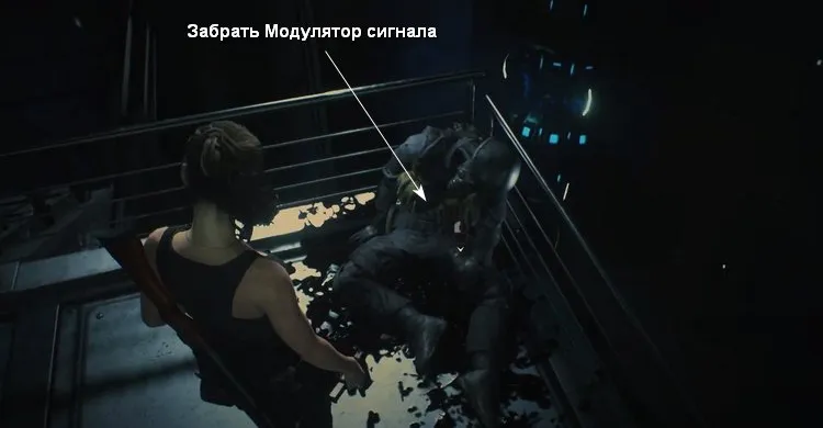 На стене видим панель, переключаем модулятор в такой же режим. Идем к двери синего цвета по коридору, аккуратно на пути будут зомби. Найдите на столе трофей, внимательно осмотрите: на него нанесён код.