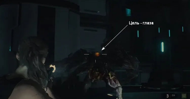 Чтобы уничтожить его стреляем в глаза (их 3), если уничтожить их, то в районе живота появляется чувствительная зона – целимся туда, пока не исчезло. Так нужно повторить несколько раз.