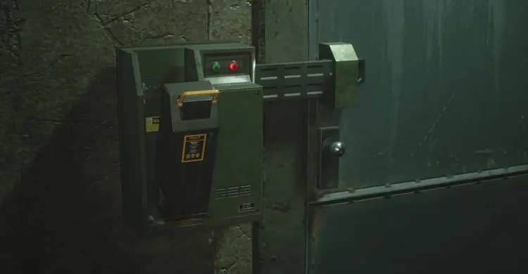 Выходим в коридор и спускаемся по лестнице. С правой стороны увидим металлическую дверь и рядом с ней листок «Усиление охраны канализации». Дверь заперта, чтобы её открыть нам потребуется батарея.