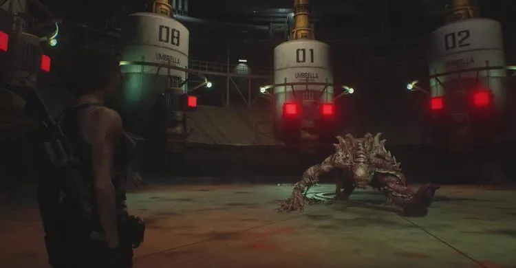 У вас есть готовая вакцина. Хватают щупальца, вырываемся из них. С левой стороны коридора люк, залазим в него. Немезис опять хватает вас, нужно взорвать бочку возле него. Есть возможность оторваться на лифте.