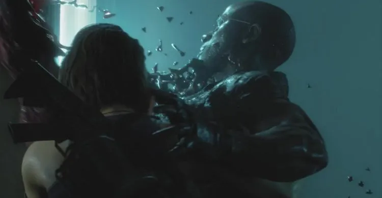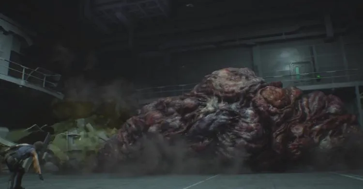 Переходим в помещение с сохранением, забираем боеприпасы и Характеристику оружия. Натыкаемся на Николая, пока вы беседуете ломается стена. Немезису удалось спастись, он стал большим сгустком массы. Карлос начинает гнаться за Николаем, а вам предстоит бой с монстром.