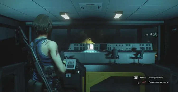 Оказываемся в комнате сохранения, забираем боеприпасы. Открываем ящик, в нём зелёная трава, неподалёку ящики с высококачественным порохом, там же подбираем лечебный спрей. Видим надпись Ликвидационный центр.
