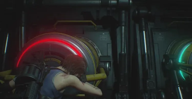 Обратно вниз по лестнице, нападает зомби, убиваем его, передвигаем цилиндр красного цвета прямо в стену, включится питание, что приведёт к открытию двери перед вами. Неподалёку стоит белый чемодан, открываем и находим лечебный спрей.