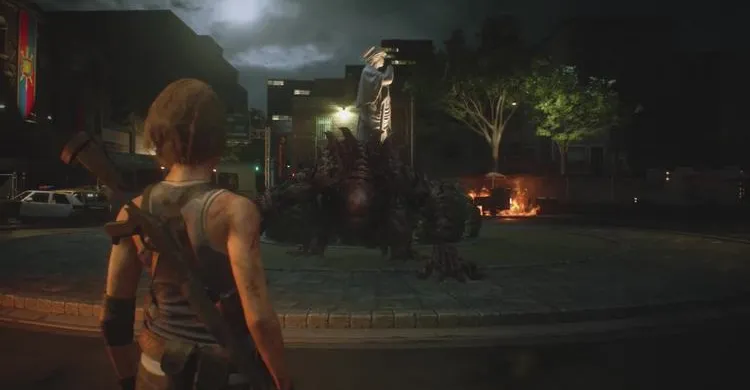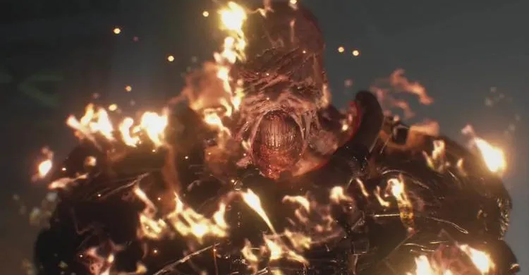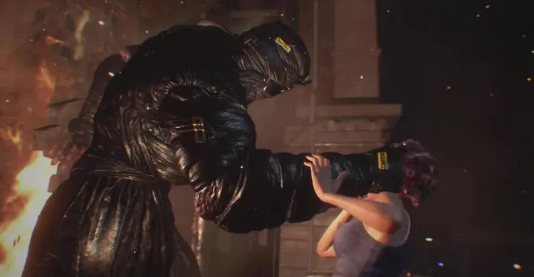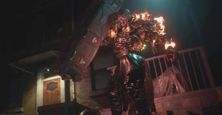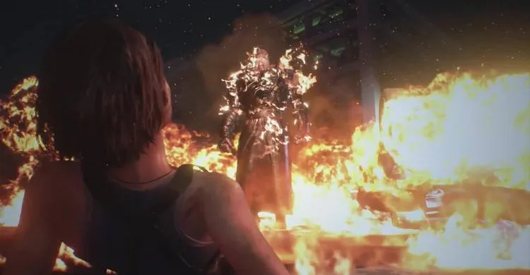 По мере прохождения игры, перед вами появится Немезис с огнеметом. В этой сцене лучше будет держаться на расстоянии недосягаемом его оружием иначе он способен поджарить Джилл. Она станет более уязвимой, и босс этим обязательно воспользуется. Вы также можете спрятать Джилл за любые препятствия, тем самым избегая огненного шквала. И даже если вас подожгли, любыми способами уклоняйтесь от физических атак монстра.