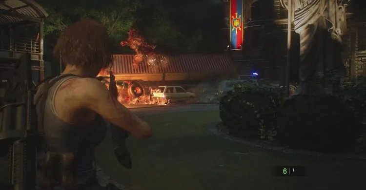 В тот момент, когда Немезис начинает бегать по кругу, прекратите вести по нему огонь. Не тратьте зря патроны. Во-первых, их и так не очень много, во-вторых шанс попасть в быстронесущегося монстра очень малы. Потратьте это время с пользой – начните пополнять боезапасы и медикаменты из близлежащих автомобилей и ящиков. И когда Немезис прыгнет, вы сможете встретить его достойно, во всей красе.