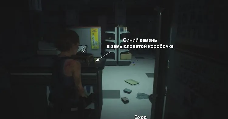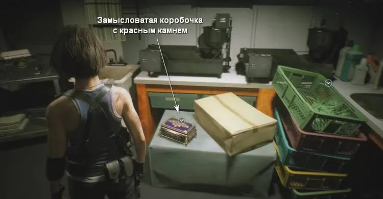 Камень красного цвета находится на кухне Магазина пончиков. Найдите замысловатую коробочку, лежащую на столе слева рядом с большой коробкой, запакованной в бумагу. В вашем инвентаре, выберите функцию «изучить». В ваших руках окажется рубин.