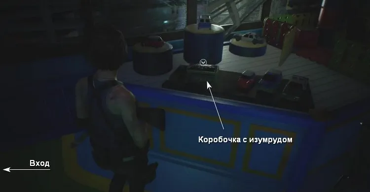 Для зеленого камня вам потребуется отмычка, чтобы вскрыть замок, висящий на магазине игрушек. Он расположен напротив супермаркета, через дорогу. С левой стороны, на прилавке возле окна найдете замысловатую коробочку. В ней спрятан изумруд.