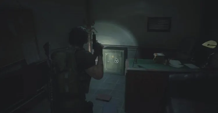 Этот сейф обнаружите в полицейском участке, когда будете играть за Карлоса. Вам нужно найти Западный офис, расположенный на первом этаже. Сейф находится в кабинете сбоку – будьте осторожны, в нем находятся зомби.