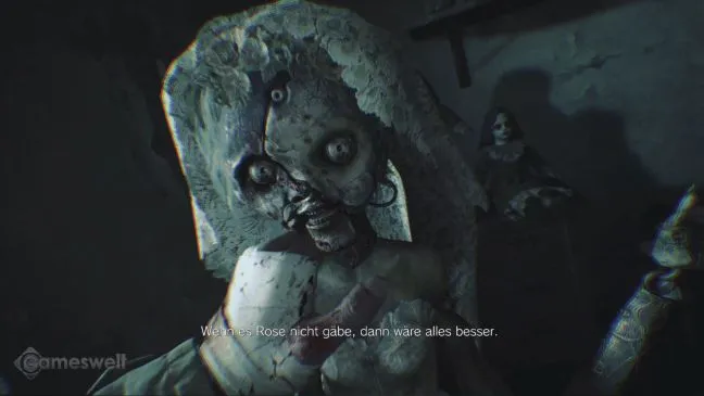 Теперь начинается игра на время. Кукла Энджи спряталась, и Итан должен ее найти. Чем дольше длится поиск, тем больше нервничают все ее друзья-куклы. Они хихикают, улыбаются, все сильнее и сильнее гремят, пока в какой-то момент не бросаются на Итана и не одолевают его. В зависимости от выбранного уровня сложности Итан выдержит это один или два раза, прежде чем умрет, поскольку у вас нет возможности исцелиться. Инвентарь Итана по-прежнему отсутствует. Поэтому нужно как можно быстрее найти куклу в доме и отличить ее от других кукол - три раза подряд.