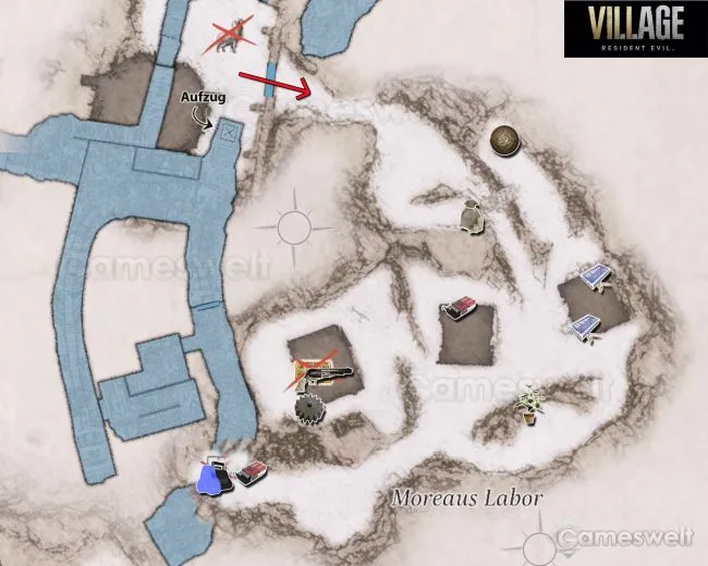 Благодаря обновленному ключу доступ теперь есть везде. Например, в левой нижней части деревни найдите крошечный куриный двор, включающий один из наружных туалетов. На вершине кладбища заблудился самец. Его оленина пригодится для апгрейда. Во многих местах вы также найдете новые боеприпасы. Например, перед домом Луизы, где также находится клад. Там вы найдете ожерелье Луизы, разрывные пули и патроны для магнума.