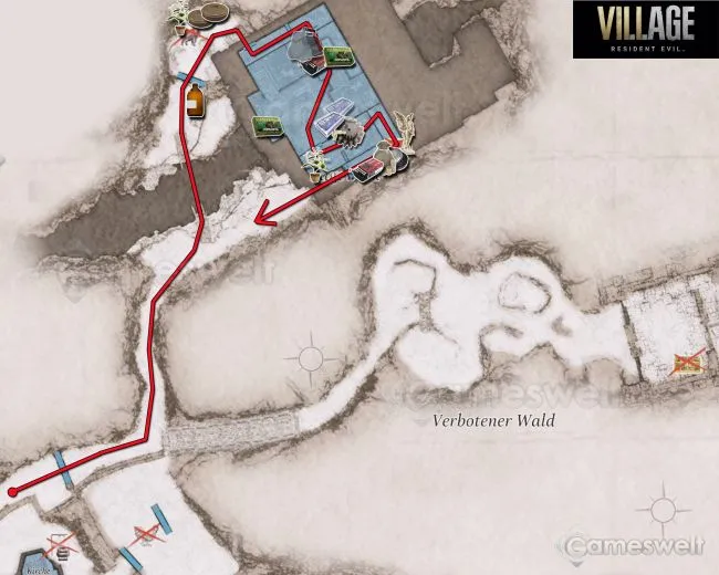 Бойня не является обязательной станцией в игре, но вы все равно ее пройдете и соберете там ценные запасы. Путь туда довольно прост: следуйте огромным указателям, которые Гейзенберг установил в деревне. Вы пройдете мимо входа в замок, а затем повернете направо. Отоприте ворота крылатым ключом эмбриона.