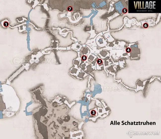 Мы пронумеровали все восемь сундуков на нашей карте. Их точное расположение можно найти на внутриигровой карте.