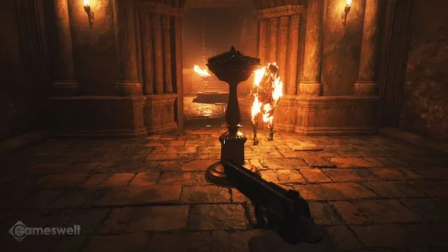 Сундук с сокровищами 6: Сокровищница у реки Вы сможете добраться до этого сокровища только после победы над Моро. Благодаря клюке Вы сможете опустить разводной мост у реки на тропе паломников. По нему вы попадете на пристань с лодкой. Поднимитесь на лодке вверх по реке в сторону замка. Сойдите на следующей пристани и найдите большие двустворчатые ворота. Откройте их и войдите в хранилище. В его задней камере на цепи висит факел. Раскачайте его (быстрее всего это сделать с помощью пистолета) так, чтобы зажглись два стоящих факела. До третьего и последнего факела с помощью подвесного огня не добраться. Вместо этого воспользуйтесь ревенантами, которые теперь выходят из боковых комнат. Заманите одного из них к висящему огню, чтобы его халат начал гореть. Затем заманите его в темную последнюю комнату к третьему факелу сзади. Если он тоже загорится, вы доберетесь до сокровищ. Это золотая статуэтка леди Димитреску. Товар на продажу.