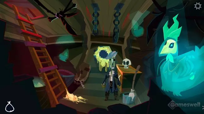 Путешествие корабля-призрака на Остров Обезьян начинается со множества ограничений для Гайбраша. Он всего лишь второй уборщик и должен оставаться в трюме по приказу своего начальника Гуллета. Каждый раз, когда вы вытираете кучу жира, которую Гуллет бросил на пол, он подбрасывает новую. Так что теоретически ваша задача никогда не закончится.