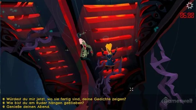 Он не узнает Гайбраша, потому что вы уже не в форме призрачного скребка. Спросите его о блокноте, спрятанном в рубашке. Расспрашивайте, пока не узнаете о его стихах, и предложите помощь. Он соглашается и просит подобрать рифмы к слову "зверь". Некоторые из ответов подходят. Например, территориальный, жадный или размазанный. Для второго ему нужно что-то растущее. Например, роза, личинка, обида или - если уж совсем придираться - ушная сера. И последнее, но не менее важное: рифма с пакетом. Хорошим выбором будет "лак" или "обломки". Выбор за вами. Он благодарит вас, и разговор окончен.