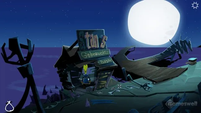 Отправляйтесь на остров Мели по верхней дороге. Прочитав с помощью монокля серийный номер замка цепи Стэна, вы сможете получить у слесаря дубликат ключа для цепей Стэна. Затем вернитесь в Брр Муда, зайдите к Стэну в тюрьму и покажите ему новое решение суда. Стэн не хочет отбывать 10 лет и просит вас помочь ему бежать. Освободите его с помощью нового ключа. Вы сможете сбежать, а Стэн окажет Гайбрашу услугу, поработав над листовкой Элейн.