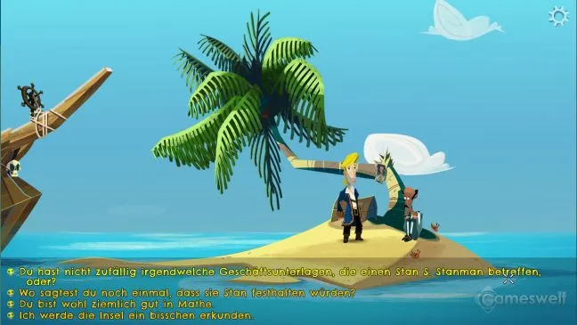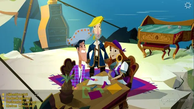 Гайбраш должен помочь переименовать некоторые термины. Для лайма следует выбрать саблевидный фрукт. Впрочем, не так уж важно, что еще вы выберете. Мы выбрали очарование для особой силы и "вгрызаться в него" для приглашения. Листовка, которую делает Стэн, - полная ерунда, но она якобы обладает достаточной силой, чтобы убедить нескольких простодушных пиратов есть лайм (он же саблевидный фрукт). Положите новую листовку, лежащую на столе, в инвентарь.