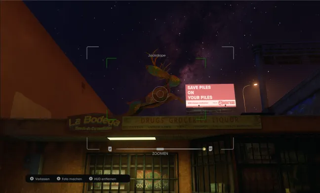 Пройдите по эстакаде автострады, проходящей к югу от вашей квартиры, и следуйте по ней на запад, где вы и обнаружите эту находку. Ваша цель называется "Шакалопа" и представляет собой фигуру на крыше супермаркета La Bodega. Сфотографируйте ее, и вы справитесь с этим заданием.