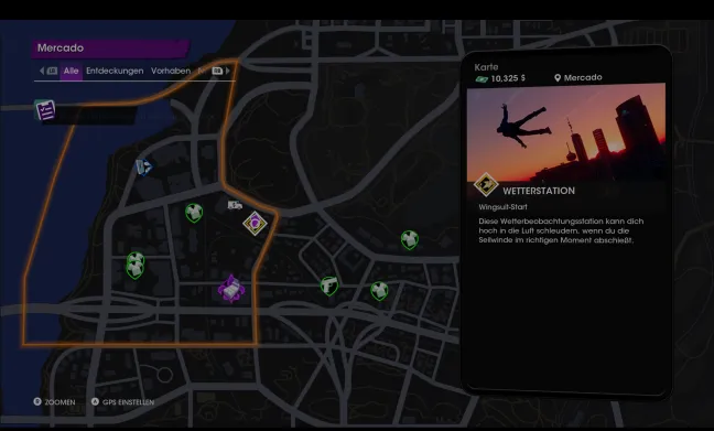 На восточной границе Меркадо, недалеко от водохранилища, находится первая метеостанция в Saints Row. Взаимодействуйте с локацией, чтобы проверить свои навыки пилотирования и повысить репутацию.