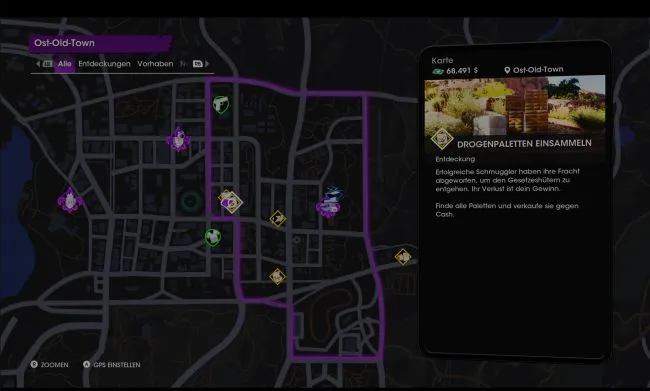 Как и в большинстве районов, в Восточном Старом городе есть поддоны с наркотиками, которые можно разграбить, чтобы заработать немного денег и престижа. Отправляйтесь туда же, где вы нашли контейнер с ценностями, - на задний двор фабрики Apollo's Coffee. Используйте контейнеры напротив фабрики, чтобы забраться на здания и захватить все три поддона.