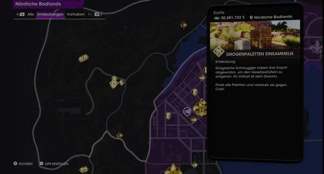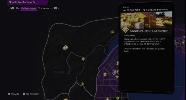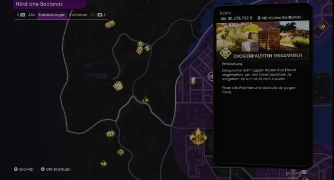 Отправляясь в город-призрак на северо-западе Северных Пустошей, вы снова обнаружите поддоны с наркотиками, лежащие на земле, легко доступные и буквально ждущие, когда их заберут Святые. Здесь вы найдете три обычных поддона.