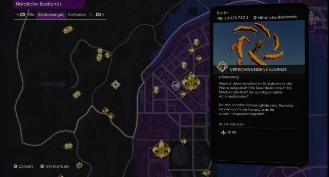 Найдите маркер на прилагаемом скриншоте, чтобы обнаружить еще одно произведение искусства с мотором. Разграбьте почтовый ящик в здании, чтобы получить новые детали для автомобиля или новый автомобиль.